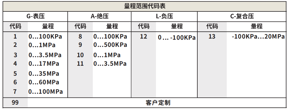 量程范圍代碼表