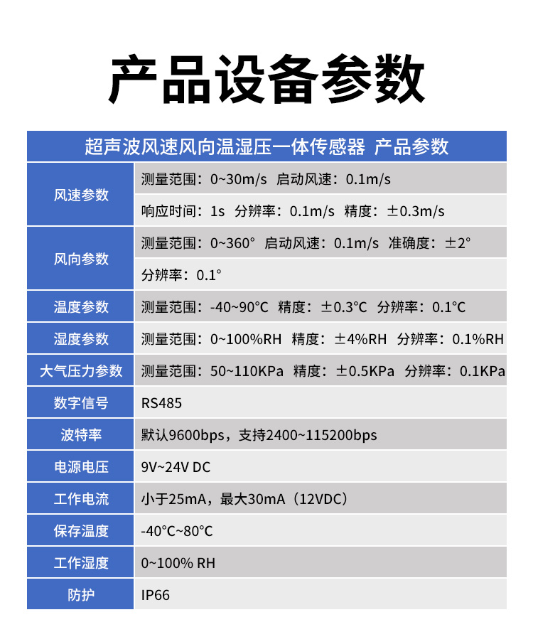 Tags: 超聲波風速風向溫濕壓一體傳感器