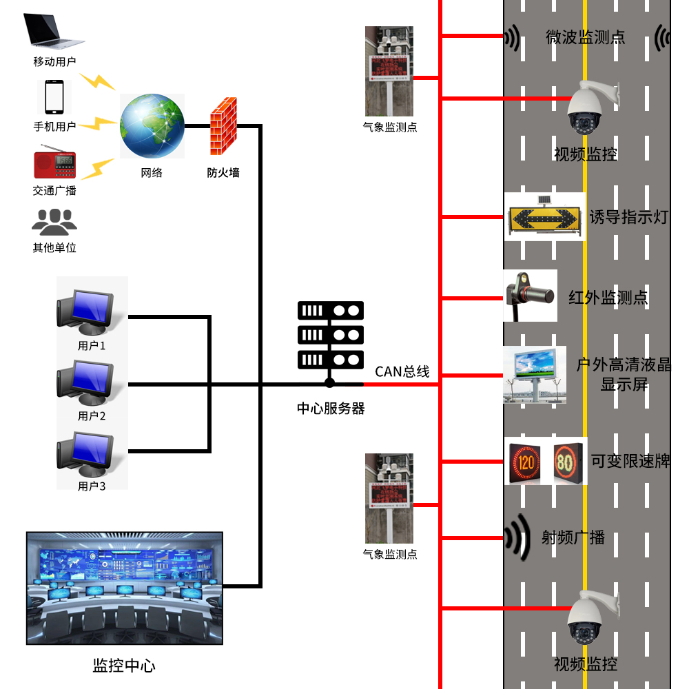 在交通網(wǎng)絡(luò)越來(lái)越發(fā)達(dá)的今天,各類以公路、鐵路交通運(yùn)輸為主的安全問(wèn)題也越來(lái)越成為人們關(guān)注的焦點(diǎn),尤其是以極端惡劣天氣情況下,所可能引發(fā)的惡性公路交通事故成為當(dāng)今公路交通安全的首要關(guān)注焦點(diǎn)。氣象環(huán)境因素對(duì)現(xiàn)代交通的影響主要表現(xiàn)其可能對(duì)路面的物理性質(zhì)、司機(jī)觀察視線以及車輛自身安全的改變等方面。例如:大雨、積水、山洪、積雪、濃霧、結(jié)冰、大風(fēng)、霜凍、高溫、塌方以及泥石流等突發(fā)氣象環(huán)境因素對(duì)道路的運(yùn)營(yíng)都會(huì)產(chǎn)生直接的破壞和影響。因此,象環(huán)境參數(shù)和道路通行狀態(tài)的數(shù)據(jù)信息采集是十分必要且非常重要的。在公路、鐵路沿線上建設(shè)實(shí)時(shí)氣象監(jiān)測(cè)網(wǎng)絡(luò)是實(shí)現(xiàn)現(xiàn)代交通定時(shí)、定點(diǎn)、定量的氣象監(jiān)測(cè)和預(yù)報(bào)服務(wù)的基礎(chǔ),交通氣象全要素全路程實(shí)時(shí)化監(jiān)測(cè)及防災(zāi)預(yù)警系統(tǒng)將是未來(lái)智慧交通系統(tǒng)必不可少的組成部分。