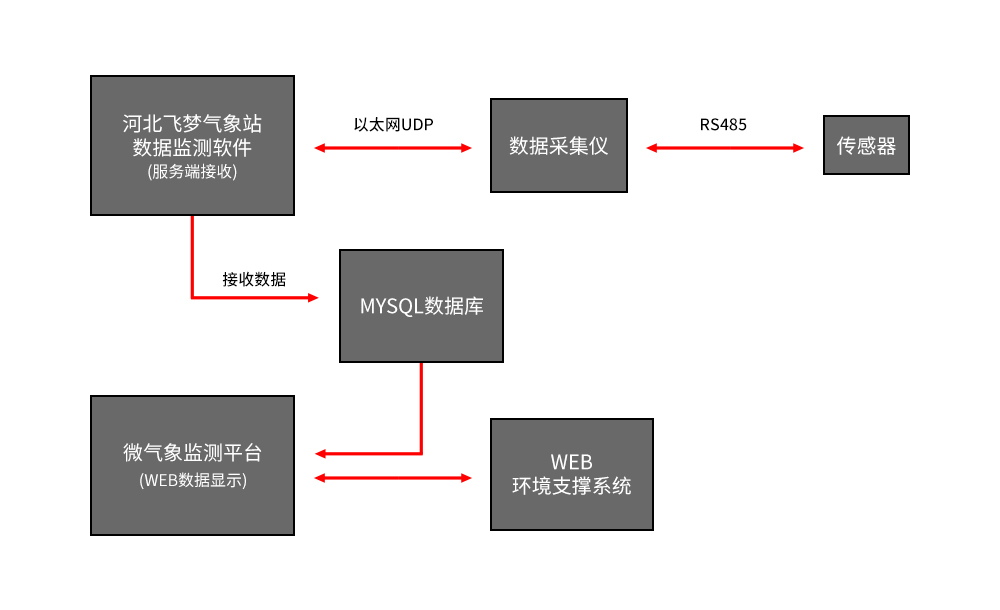 飛夢(mèng)交通氣象智能預(yù)警系統(tǒng)方案由傳感器系統(tǒng)、采集系統(tǒng)、供電系統(tǒng)、通訊系統(tǒng)、外圍設(shè)備等硬件配合相應(yīng)的采集軟件、數(shù)據(jù)處理分析軟件、中心站組網(wǎng)軟件構(gòu)成。對(duì)公路、鐵路沿線的風(fēng)向風(fēng)速、氣溫、濕度、雨量、能見(jiàn)度、路面狀況(路面和路基溫度、路面干濕程度、積水厚度、雪深等))等進(jìn)行自動(dòng)監(jiān)測(cè),并將監(jiān)測(cè)信息及時(shí)傳送到監(jiān)控中心。