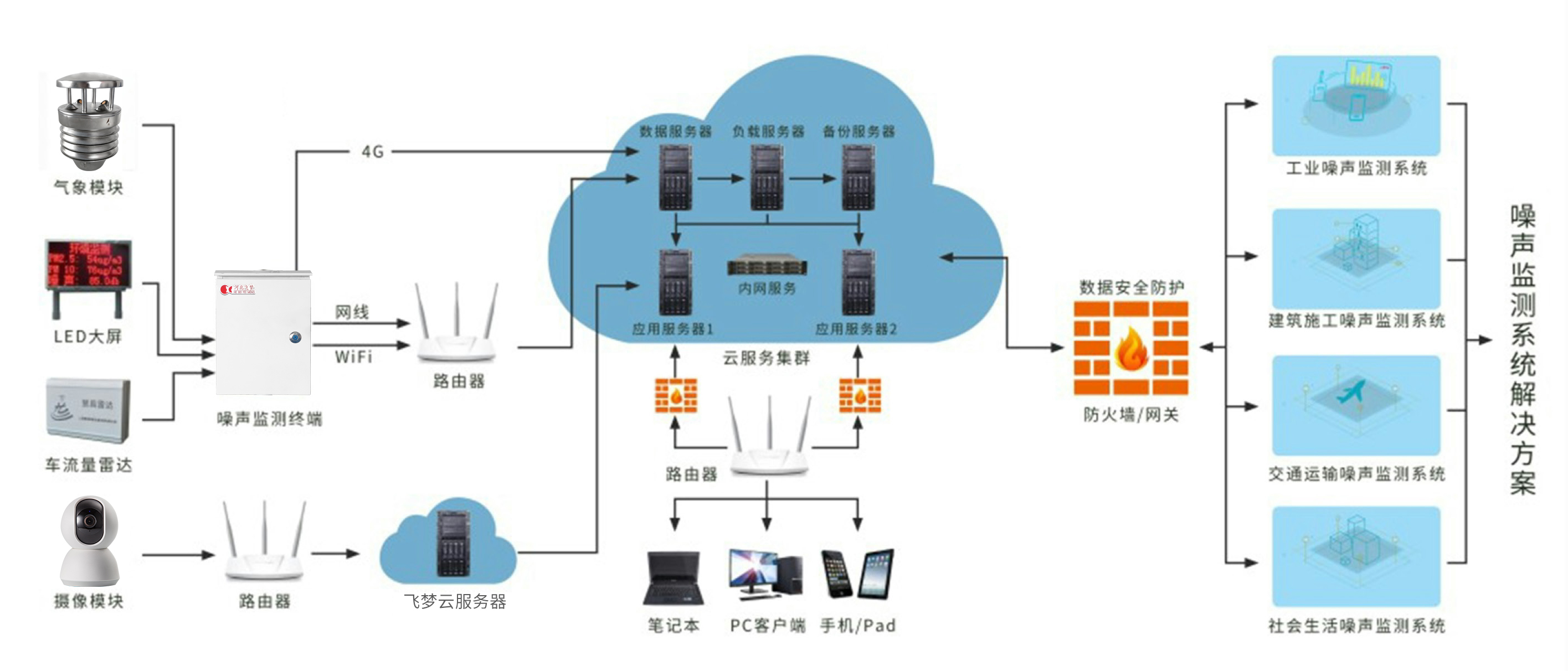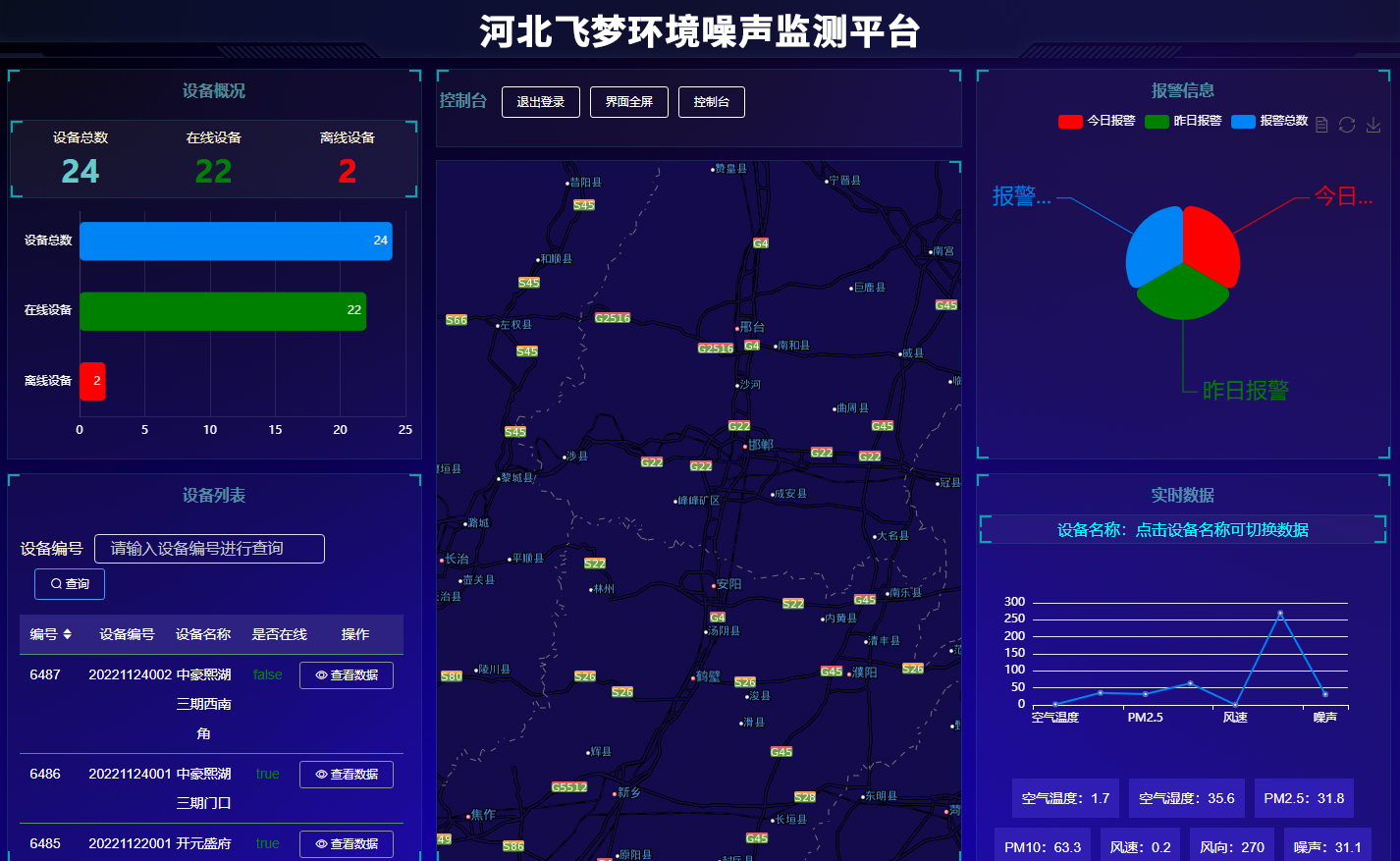 終端設備兼容:平臺可同時兼容多個型號的飛夢噪聲監測儀器
